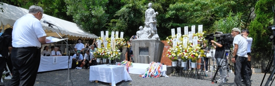![]() ’Ç“‰‚ÌŽ« @–{“ú‚±‚±‚Éu•‚“‡ŠÛ}“ï‚W‚OŽü”N’Ç“‰W‰ïv‚ðŠJ·‚é‚É‚ ‚½‚èA‹]µŽÒ‚ÌŠF—l‚ÉS‚æ‚舣“‰‚̈ӂð•\‚µ‚Ü‚·B @¡‚©‚ç‚W‚O”N‘O‚Ì¡“úA•‚“‡ŠÛ‚ÍA“Ë‘R‚Ì”š”‚É‚æ‚èA‚±‚Ì’Ç“‰Œö‰€‚©‚ç–Ú‚Ì‘O‚ÉL‚ª‚é•‘’ߘp‚É’¾–v‚µ‚Ü‚µ‚½Bæ‚Á‚Ä‚¢‚½’©‘N‚Ìl‚½‚¿‚âA•‚“‡ŠÛ‚Ìæ‘gˆõ‚ÍAd–û‚Å^‚Á•‚ɂȂÁ‚½ŠC‚ɓЂ°o‚³‚êA‚ ‚é‚¢‚Í‘D‘̂ƂƂà‚ÉŠC’†‚É’¾‚݂܂µ‚½B @•‚“‡ŠÛ‚Ì’¾–v‚ð–ÚŒ‚‚µ‚½’nŒ³‚ÌlX‚ÍA‚·‚®‚É‘D‚ðo‚µ‚Ä‹~•‚ÉŒü‚©‚¢A•‘’ß‚ÌlX‚ÆŠCŒR‚É‚æ‚錜–½‚Ì‹~•‚ª‘±‚¯‚ç‚ê‚Ü‚µ‚½B @‚µ‚©‚µ‚È‚ª‚çA‚±‚Ì‘åŽSŽ–‚É‚æ‚èA—«‚â—c‚¢Žq‚Ç‚à‚ðŠÜ‚Þæ‹q524–¼i•{”•\j‚Ææ‘gˆõ25–¼‚Ì‘¸‚¢–½‚ªŽ¸‚í‚ê‚Ü‚µ‚½B @‹]µ‚ɂȂç‚ꂽ’©‘N‚Ìl‚½‚¿‚âA•‚“‡ŠÛ‚Ìæ‘gˆõ‚É‚ÍAu푈‚ªI‚í‚Á‚½‚Ì‚ÅA‚悤‚₌̋½‚É‹A‚邱‚Æ‚ª‚Å‚«‚éIvu‚Ȃ‚©‚µ‚¢‰Æ‘°‚ɉ‚éIvuŒÌ‹½‚É–ß‚Á‚½‚çA‚â‚肽‚¢ŽdŽ–‚ð‚µ‚æ‚¤Iv‚ÆA«—ˆ‚Ö‚Ì–¾‚é‚¢Šó–]‚âŠè‚¢‚ª‚ ‚Á‚½‚Í‚¸‚Å‚·B @‚µ‚©‚µA•‚“‡ŠÛ‚Ì”š’¾‚ÍA‹]µ‚ɂȂÁ‚½l‚½‚¿‚Ì«—ˆ‚Ö‚Ì–²‚âŠó–]AlŠÔ‚Ì‘¸Œµ‚âlŒ A‚»‚µ‚Ä–¢—ˆ‚ðK‚¹‚ɶ‚«‚éŒ —˜‚ðAˆêu‚É‚µ‚Ä’D‚Á‚Ä‚µ‚Ü‚Á‚½‚̂ł·B @¡‚©‚ç60”N‘OA•‚“‡ŠÛ‚Ì”š’¾‚©‚ç20”NŒã‚Ì1965”N‚Ì‚±‚Ƃłµ‚½B @@u–S‚‚È‚Á‚½l‚½‚¿‚𒢂¢‚½‚¢vu•‚“‡ŠÛ‚Ì”š’¾‚Ì‚æ‚¤‚ȔߎS‚È‚±‚Æ‚ÍA“ñ“x‚ÆÄ‚ÑŒJ‚è•Ô‚µ‚Ă͂¢‚¯‚È‚¢v‚ÆA•‘’ߎs–¯‚Í‹]µŽÒ‚Ì’Ç“‰‚ðŽn‚߂܂µ‚½B @‚»‚µ‚Ä1978”NA•‘’ߎs–¯‚ÍA‹]µŽÒ‚ÌŽ€‚ð”ß‚µ‚ÝA‚±‚̒ɂ܂µ‚¢—ðŽj‚ðŒã¢‚ÉŒê‚èŒp‚®‚±‚Æ‚ð–Ú“I‚É‚µ‚ÄA‰º²”g‰ê‚ÌŠF—l‚Ì‚²‹¦—Í‚ÆA‘½‚‚ÌŽs–¯‚ÌŠF—l‚Ì•å‹àA‚»‚µ‚Ä‹ž“s•{‚È‚ç‚тɕ‘’ߎs‚©‚ç‚Ì‚²Žx‰‡‚É‚æ‚èA”š’¾Œ»ê‚ɋ߂¢‚±‚ÌꊂɒǓ‰Œö‰€‚Æ’Ç“‰‚Ì”è‚ð‚‚‚è‚Ü‚µ‚½B @—ðŽj‚ðU‚è•Ô‚ê‚ÎA•‚“‡ŠÛ‚Ì”š’¾‚ÍA–¾Ž¡ˆÈ~‚Ì“ú–{‚ÌA–¯’nŽx”z‚âN—ªí‘ˆ‚ª‚È‚¯‚ê‚΋N‚±‚Á‚Ä‚¢‚Ü‚¹‚ñ‚Å‚µ‚½B @‚µ‚©‚µ‚È‚ª‚çA‚W‚O”N‚ªŒo‚Á‚½Œ»Ý‚àA•‚“‡ŠÛ‚Ì”š’¾‚É‚Â‚¢‚Ă͖¢‰ðŒˆ‚̉ۑ肪ŽRÏ‚µ‚Ä‚¢‚Ü‚·B @‚Ü‚¸A”‘½‚‚ÌŽ–ŽÀ‚ª–¾‚ç‚©‚É‚³‚ê‚Ä‚¢‚Ü‚¹‚ñBæ‘DŽÒ‚Ìl”‚àA‹]µŽÒ‚Ìl”‚àA‚»‚µ‚Ä•‚“‡ŠÛ‚ª”𔂵‚½Œ´ˆö‚³‚¦‚à‹^–â“_‚ªŽc‚³‚ꂽ‚܂܂ɂȂÁ‚Ä‚¢‚Ü‚·B‚Ü‚½A“Œ‹ž‚Ì–Ú•‚É‚ ‚é—S“VŽ›‚É‚ÍAŒÌ‹½‚É‹A‚邱‚Ƃ̂ł«‚È‚¢ˆâœ‚Q‚W‚O‘Ì‚ªˆÀ’u‚³‚ꂽ‚܂܂ɂȂÁ‚Ä‚¢‚Ü‚·B @“ú–{‚¨‚æ‚Ñ“ú–{l‚Ì—ðŽj“IÓ”C‚Æ‚µ‚ÄAŽc‚³‚ꂽ‚܂܂ɂȂÁ‚Ä‚¢‚é‰Û‘è‚ð‰ðŒˆ‚·‚éÓ”C‚ªAŽ„‚½‚¿‚ɂ͉ۂ¹‚ç‚ê‚Ä‚¢‚Ü‚·B @Œ»ÝA¢ŠE‚Ì‚¢‚½‚邯‚±‚ë‚Å푈‚â•´‘ˆ‚ª‹N‚±‚³‚êAŒRŠg‚Ì“®‚«‚à‹‚Ü‚Á‚Ä‚¢‚Ü‚·B‹ð‚©‚È푈‚ðĂыN‚±‚³‚È‚¢‚½‚ß‚ÉA—ðŽj‚ð^•‚ÉŠw‚Ô‚±‚Æ‚ð‚‚¤‚¶‚ÄA푈‚ւ̊댯‚È“®‚«‚ɂ‚¢‚Ä‚ÍA‰½‚æ‚è‚à•qŠ´‚Å‚¢‚½‚¢‚Æl‚¦‚Ä‚¢‚Ü‚·B @‚»‚µ‚ÄŽ„‚½‚¿‚ÍA푈‚ð‹N‚±‚³‚È‚¢‚½‚߂ɉ½‚ð‚·‚ê‚΂¢‚¢‚Ì‚©‚ðA¢ŠE’†‚ÌlX‚Æl‚¦AŒê‚臂¢A‹¤‚É•½˜a‚ð‹‚߂麂ðã‚°‘±‚¯‚Ä‚¢‚«‚½‚¢‚ÆŽv‚¢‚Ü‚·B @Œ‹‚тɂ ‚½‚è‚Ü‚µ‚ÄA–{“ú‚±‚±‚ɉü‚߂ĕ½˜a‚Ö‚ÌŒˆˆÓ‚ðV‚½‚É‚µA‹]µŽÒ‚ÌŠF—l‚Ö‚Ì’Ç“‰‚ÌŽ«‚Æ‚³‚¹‚Ä‚¢‚½‚¾‚«‚Ü‚·B @@@2 0 2 5”N‚WŒŽ‚Q‚S“ú @@@@@@@@@@@@@@@@•‚“‡ŠÛ}“ïŽÒ‚ð’Ç“‰‚·‚é‰ï @@@@@@@@@@@@@@@@@@@‰ï’·@•i“c@–Î ![]() ’Ç“‰‚ÌŽ« @–{“ú‚±‚±‚ÉA•‚“‡ŠÛ}“ï‚W‚OŽü”N’Ç“‰W‰ï‚ªŒµ‚©‚ÉŽ·‚ès‚í‚ê‚é‚É“–‚½‚èA‹ž“s•{’mŽ–‚Æ‚µ‚ċނñ‚Å’Ç“‰‚ÌŒ¾—t‚ð\‚µq‚ׂ܂·B @‘åíIŒ‹Œã‚̺˜a‚Q‚O”N‚WŒŽ‚Q‚S“úA‚±‚±²”g‰ê‰«‚Ì”g‰¸‚â‚©‚È•‘’ߘp‚ÅA•‚“‡ŠÛ‚͓˔@‚Æ‚µ‚Ä”š”E’¾–v‚µA’nŒ³‚Ì•ûX‚ç‚ÌŒœ–½‚Ì‹~•Šˆ“®‚É‚à‚©‚©‚í‚炸A‘½‚‚Ìæ‘DŽÒEæ‘gˆõ‚Ì‘¸‚¢–½‚ª‹]µ‚ƂȂé‘åŽSŽ–‚ƂȂè‚Ü‚µ‚½B @푈’†‚̉ߓ‚È󋵂©‚ç‚æ‚¤‚₉ð•ú‚³‚êA‰ù‚©‚µ‚¢ŒÌ‹½‚∤‚·‚éŒä‰Æ‘°‚Ì‚à‚Æ‚Ö‹A‚肽‚¢‚Æ‚ÌØŽÀ‚ÈŠè‚¢‚ð‰Ê‚½‚·‚±‚ƂȂA“Ë‘R‚ÌŽSŽ–‚É‚æ‚Á‚Ä‚·‚ׂĂð’D‚í‚ꂽŒä–³”OA‚Ü‚½Œäˆâ‘°‚ÌŒä˜J‹ê‚ÆŒäS’ɂɎv‚¢‚ð‚¢‚½‚µ‚Ü‚·‚Æ‚«As‚«‚邱‚Ƃ̂Ȃ¢[‚¢”ß
