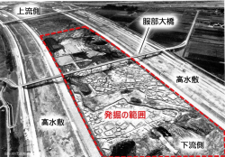 弥生時代の水田跡としては、弥生後期の静岡県登呂遺跡の約7万㎡、岡山県百間川遺跡の約4万㎡がありますが、弥生前期では奈良県の中西遺跡の水田跡約2万㎡と並んで服部遺跡は日本最大級の水田規模となる。