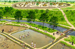 水田はダムになる、その貯水量は日本にある全部のダムの約2倍の50億トンくらいだろうといわれる。とてもたくさんの水を貯めておくことができ、この水は洪水対策だけでなく国土の自然を安定させる。コメは日本文化と国土も築いてきた。