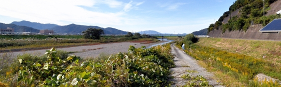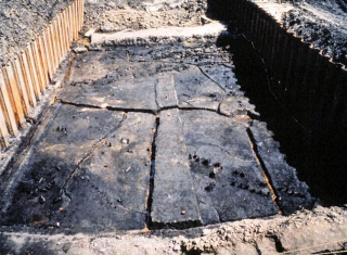 弥生時代前期の遺跡。北川の現流路河床に位置する。昭和62年、北川改修工事中に発見された。遺物包含層は海抜-1.0m以下にあるシルト質泥炭層で、弥生時代前期の土器約1,000片と縦斧の柄(カシ製)、黒漆塗高杯(ケヤキ製)、ヒョウタン果皮等が出土した。河川後背の湿地に遺物が廃棄されて形成された遺跡で、近傍の自然堤防上には集落が、周辺低地には水田が広がっているものと推測されている。
