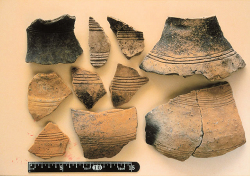 出土した遺物は、坪形・甕形・鉢形などの土器が約1200点、木器2点、ヒョウタン果皮1個体分など、土器は、弥生時代前期のもので、遠賀川式土器の系統です。日本海を舞台とした西方からの前期弥生式文化が、若狭地方に根付いた。