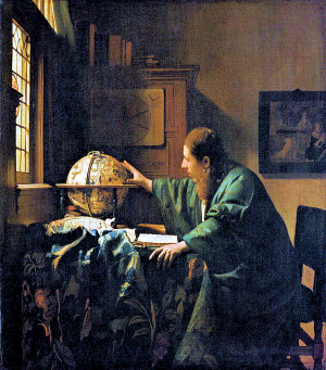![]() 放送ではじゅうぶんに取り上げきれなかったところを当HPなどで若干補足したいと思います。 (資料はネット上のものなど 感謝) ![]() ストーンヘンジ↑紀元前2500年から紀元前2000年の間に立てられたと考えている。 時を知る天文台か、とも言われる。 こんな大がかりなことをしなくとも、棒を一本立てておけば、だいたいの季節と、その日の時刻を知ることができる。←どの地方の写真か不明だが、赤道近くでなければ、棒のカゲが一番長くなるときが冬至で、一番短くなるときが夏至、その中間が春分・秋分になる。カゲのできる方向で時刻を知ることができる。ただし昼間の太陽が出ているときしか使用できない。 暦は、天体の運行と関係したもので、地球の自転を元にして日、月の公転を元にして月、地球の公転を元にした年など、いくつかの単位に細分されている。時刻は暦ではわからない。 古代人がまず最初に気づいたのは、日(太陽)の出没、すなわち1日であった。また、季節の推移と、それが一定の周期で一巡することにも気付き、年の概念が現れる。さらに周期的な月の満ち欠けに気付き、これがおよそ12回繰り返すと季節の一巡することに気づいた。こうして日・月・年の単位が成立した。 地球の自転と公転、さらに月の公転はそれぞれが勝手に動いているもので、お互いには何も関係がなく、互いの整数倍でもない。また、それぞれの周期は厳密にはわずかにユレもある。 暦の月が、実際の月の満ち欠けと一致するのは太陰暦だけで、太陽暦と月の動きは全く関連付けられていない、しかしそれでも多くの言語で暦月と月の名称に関連があり、また太陽暦でも通常1ヶ月が30日前後となっているのは太陰暦の名残であると考えられている。 暦は地方地方や時代時代で、各種たくさん作られた、簡単なようで本当はチョームズイ、天文学、数学と占星術などと結びついて発展してきた。 日本語の「コヨミ」は ←フェルメール「天文学者」(1668年)一時はナチの手にわたり、危うく爆破される寸前であった、数奇な運命をたどった絵画。 ユダヤ系金融一族が所蔵していたが、ナチス・ドイツが1940年のフランス侵攻時に押収。絵の裏面には、ナチスの所蔵物であることを示す小さい鍵十字が刻印された。 ヒトラーは美術に関心が高く、若き頃は画家を目指していたという。後には自分好みの美術館を建設する計画を立て、展示する作品集めを始めた。 ルーヴルやエルミタージュにも劣らぬ壮大な美術館を夢見て、膨大な数の作品を収集した。「収集」といっても、買い叩き、騙し取り、特にユダヤ人財産は押収するというありさまで、実態は略奪と呼ぶに近い。ヒトラーが好んだのは、古典作品で、特にフェルメールに魅了されていたという。もう1作「絵画芸術」(↓)という絵画も、オーストリアの貴族からヒトラー個人が1940年に購入している。 ![]() 次第に戦況が悪化し、美術どころではなくなってくると、ヒトラーはひとまず大事なコレクションを安全な場所へ移すことに決め、オーストリアのアルトアウスゼーにある岩塩坑に隠された。ベルリンの地下壕にこもって指揮をとるようになってからも、ヒトラーは「天文学者」の写真をよく眺めていたという。 とうとう悪運つきてヒトラーは自殺。その報を受けたアルトアウスゼーは、すぐさま坑道を爆破する準備に取り掛かった。撤退の際は軍事施設や文書などを全て処分し、敵に何も渡さないよう命じられていた。ところが、ヒトラーは「美術品は私利私欲ではなく、美術館のために集めた。適切に遺贈してほしい。」旨の遺書に残して、コレクションは破壊の対象外になっていた。 敗戦が色濃くなる中で指揮系統も混乱し、きちんと伝令が伝わらなかったようで、爆破準備は着々と進み、坑道内に爆弾を仕掛けるところまでいったものの、すんでのところで爆破は食い止められた。美術品の破壊に胸を痛める者たちが、懸命に爆弾を取り除いたという。ドイツが降伏するわずか3日前のことで、「天文学者」「絵画芸術」も命拾いしたという。どこまで史実が知らないが、そうしたアメリカ映画もあった。 大戦終結後「天文学者」はロートシルト家に返還され、その後1983年に遺産相続税の一部現物税としてフランス政府に納められた。これ以来「天文学者」はルーヴル美術館に展示されている。 暦は大きく分けて、太陽暦、太陰暦、太陰太陽暦がある。 太陽暦は、 地球が太陽の周りを公転する周期(太陽年)を基準にした暦法、現在、世界中の多くの国で使われている「グレゴリオ暦」がその一種で、1年を基本的に365日とし、4年に一度のうるう年で調整する。太陽暦は通常12ヶ月で構成されるが、実際の月の満ち欠けとは関係はない。太陰暦は、 月の満ち欠けの周期(朔望月:約29.5日)を基にした暦。1年を12ヶ月、29.5×12=354日として計算するため、太陽暦の1年(約365日)より約11日短くなる。このずれを補正するために太陰太陽暦では約3年に一度、閏月を加えて13ヶ月の