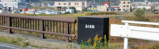 彼女と同じ名の橋が丹後にある(野田川町石川)↑、この橋より下手で合流する川は香河川、上流の大江山麓に「香河」という集落がある。かくや橋の下を流れているのは野田川で、少し上流の幾地に香久山がある。